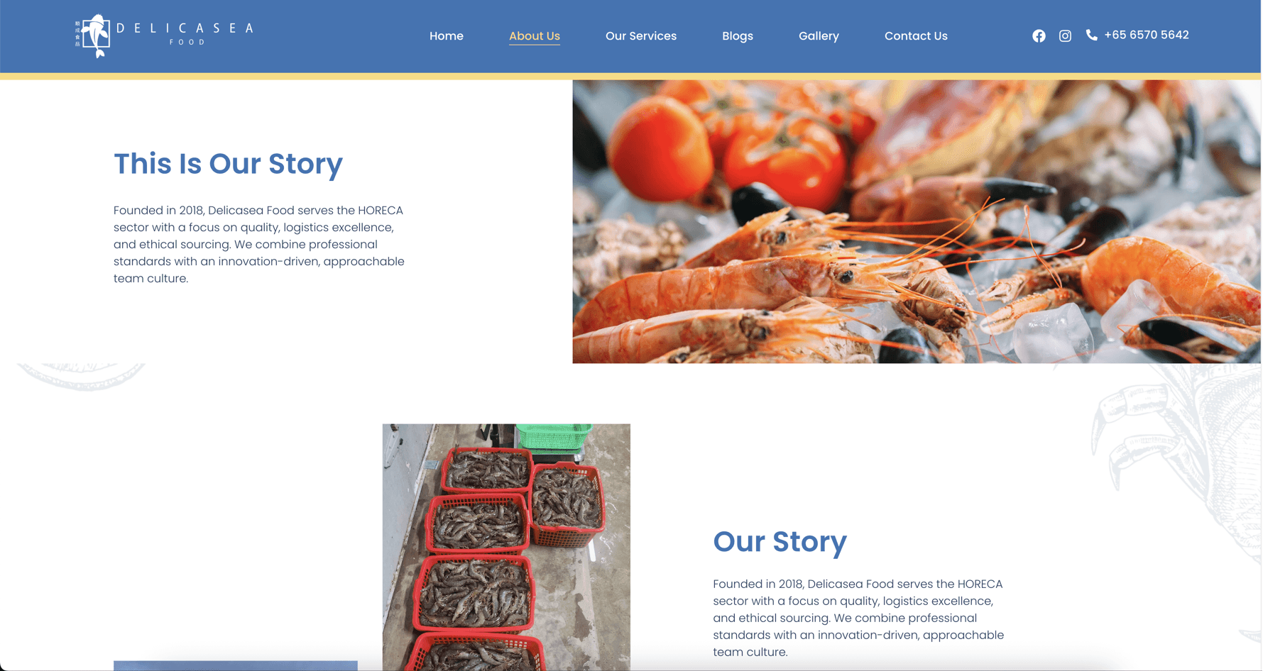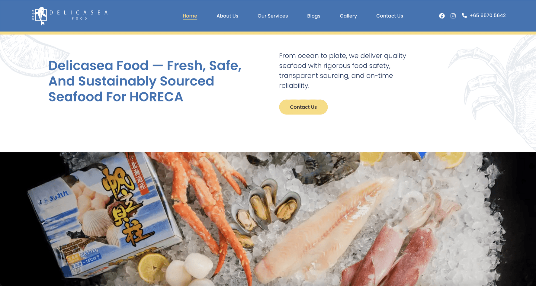 Delicasea Food Pte. Ltd. supplies fresh and frozen seafood to Singapore's hotel, restaurant, and catering sector. Although the client was established, they wanted to further digitalize their business. Our challenge was to create a site that functions as both an informational resource and a business development tool for their HORECA audience.
